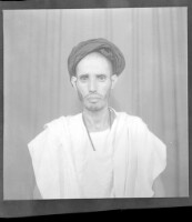 1. EAP449/2/14/549 Reference (shelfmark): EAP449/2/14/549 Title: A man wearing a white boubou with a black turban on his head sitting face-forward in the studio. Collection Area: Endangered Archives Programme Languages: Not applicable Date Range: 2nd half od the 20th century Extent: 1 TIFF image
