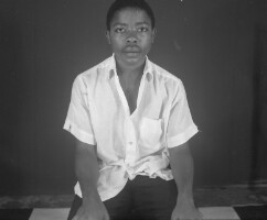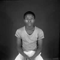 88. EAP054/1/104/88 Reference (shelfmark): EAP054/1/104/88 Title: Recreational photograph [c 1983] Scope & Content: Man standing, thumbs in his belt loops. Format of original: 59mm x 59mm plastic negative Collection Area: Endangered Archives Programme Languages: Not applicable Date Range: c 1983 Extent: 1 TIFF image