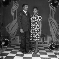 2 women, one in trousers, handbag over left shoulder and right elbow on left shoulder of the other, in a dress. Format of original: 59mm x 59mm plastic negative