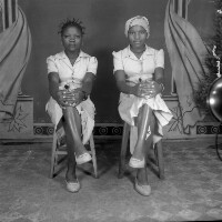 179. EAP054/1/158/179 Reference (shelfmark): EAP054/1/158/179 Title: Recreational photograph [c 1980] Scope & Content: 2 women sitting crossed legs Format of original: 59mm x 59mm plastic negative Collection Area: Endangered Archives Programme Languages: Not applicable Date Range: c 1980 Extent: 1 TIFF image