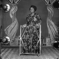 24. EAP054/1/158/24 Reference (shelfmark): EAP054/1/158/24 Title: Recreational photograph [c 1980] Scope & Content: Woman standing behind iron grillwork Format of original: 59mm x 59mm plastic negative Collection Area: Endangered Archives Programme Languages: Not applicable Date Range: c 1980 Extent: 1 TIFF image
