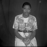 8. EAP054/1/32/8 Reference (shelfmark): EAP054/1/32/8 Title: Recreational photograph [c 1987] Scope & Content: Young boy in white outfit, standing by tinsel bouquet Format of original: 58mm x 59mm plastic negative Collection Area: Endangered Archives Programme Languages: Not applicable Date Range: c 1987 Extent: 1 TIFF image