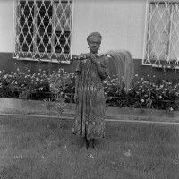 567. EAP054/1/33/567 Reference (shelfmark): EAP054/1/33/567 Title: Recreational photograph [c 1986] Scope & Content: Woman standing with light fly whisk Format of original: 59mm x 59mm plastic negative Collection Area: Endangered Archives Programme Languages: Not applicable Date Range: c 1986 Extent: 1 TIFF image