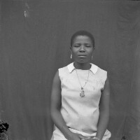2 young women from Bangang, standing, one with white scarf around her neck and hand on right cheek, the other with left hand on chest. Format of original: 59mm x 59mm plastic negative