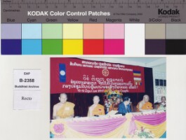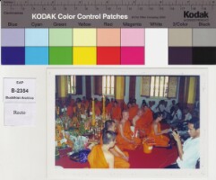 This photo was taken for memory of Ordination ceremony of grand children of Sathou Nyai Khamchan Virachitta Maha Thera, Abbot of Vat Saen Soukharam on 10th August, 1996. Original material consists of: chromogenic print