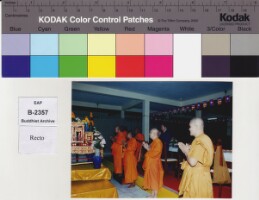 Set of gift (For offering in the ordination ceremony, and the monk watering ceremony) to make merit for Chao Maha Ou Paraj Phetsaraj, 1990s. Original material consists of: chromogenic print