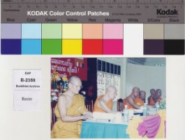 Anniversary Birth Day's 64 years old of Sathou Nyai Khamchan Virachitta Maha Thera, Abbot of Vat Saen and Sathou Nyai Bounchanh Keo Phothichitto, Abbot of Vat Xiengmouane at Vat Saen Soukharam, 1984 Original material consists of: chromogenic print