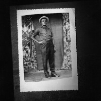 - Reproduction photo; man standing Format of original: 59mm x 59mm plastic negative