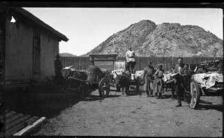 6961. EAP264/1/8/14/34 Reference (shelfmark): EAP264/1/8/14/34 Title: Ox-drawn carts ready for transport (location unknown) [1930s] Collection Area: Endangered Archives Programme Languages: Not applicable Date Range: 1930s Extent: 1 TIFF image