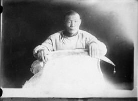 6965. EAP264/1/8/14/38 Reference (shelfmark): EAP264/1/8/14/38 Title: A man works a fur skin, Ulaanbaatar [1930s] Collection Area: Endangered Archives Programme Languages: Not applicable Date Range: 1930s Extent: 1 TIFF image
