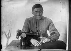6967. EAP264/1/8/14/40 Reference (shelfmark): EAP264/1/8/14/40 Title: A tailor at work, Ulaanbaatar [1930s] Collection Area: Endangered Archives Programme Languages: Not applicable Date Range: 1930s Extent: 1 TIFF image