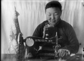6969. EAP264/1/8/14/42 Reference (shelfmark): EAP264/1/8/14/42 Title: A factory dress maker at work, Ulaanbaatar [1940s] Collection Area: Endangered Archives Programme Languages: Not applicable Date Range: 1940s Extent: 1 TIFF image