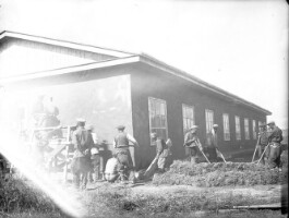 7014. EAP264/1/8/14/87 Reference (shelfmark): EAP264/1/8/14/87 Title: Men working on a building exterior finishing, Ulaanbaatar [1940s] Collection Area: Endangered Archives Programme Languages: Not applicable Date Range: 1940s Extent: 1 TIFF image
