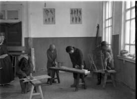 7016. EAP264/1/8/14/89 Reference (shelfmark): EAP264/1/8/14/89 Title: School children in a carpentry shop training, Ulaanbaatar [1940s] Collection Area: Endangered Archives Programme Languages: Not applicable Date Range: 1940s Extent: 1 TIFF image