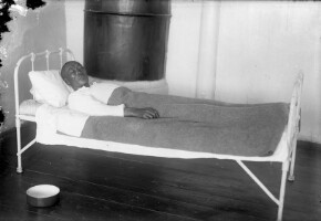 7023. EAP264/1/8/14/96 Reference (shelfmark): EAP264/1/8/14/96 Title: A man in a hospital, Ulaanbaatar [1930s] Collection Area: Endangered Archives Programme Languages: Not applicable Date Range: 1930s Extent: 1 TIFF image