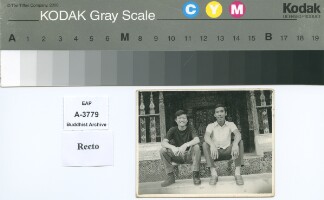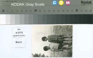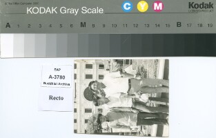 Unidentified people posing for a portrait at Vat Xiang Thong.The photo was probably taken in the A.D.1967 Original material consists of: silver gelatine DOP print