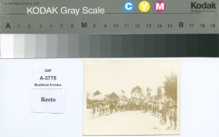 Alms offering (Kong Pa Ganthin) of General Phya Dhamrong Suradej Donsasorit at Vat Ong Teu Veintiane.The photo was probably taken in the A.D.1967 Original material consists of: silver gelatine DOP print