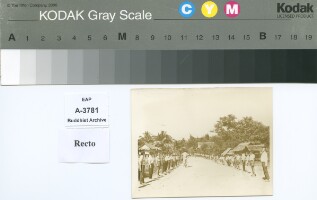 Alms procession (Kong Pa Ganthin) of General Phya Dhamrong Suradej Donsasorit.The photo was probably taken in the A.D.1967 Original material consists of: silver gelatine DOP print