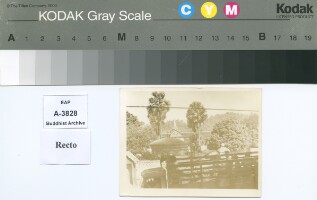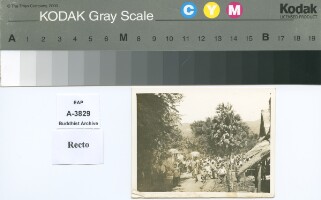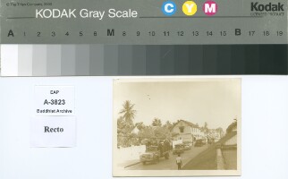 Alms procession (Kong Pa Ganthin) of General Phya Dhamrong Suradej Donsasorit.Now the truck procession arrived at Luang Prabang palace .The photo was probably taken in the A.D.1967 Original material consists of: silver gelatine DOP print