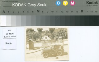 Alms procession (Kong Pha Ganthin) of General Phya Dhamrong Suradej Donsasorit.Now the truck procession arrived at Luang Prabang palace .The photo was probably taken in the A.D.1967 Original material consists of: silver gelatine DOP print