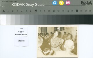 Alms offering ceremony by General Phya Dhamrong Suradej Donsasorit.The photo was probably taken in the A.D.1967 Original material consists of: silver gelatine DOP print