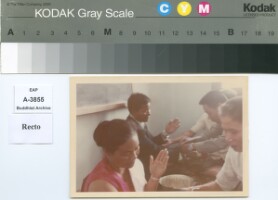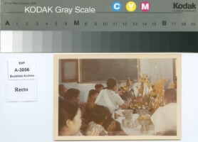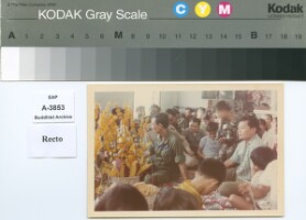 Baci (Soukhuaw) ceremony for General Phya Dhamrong Suradej Donsasorit,The superior of Laos Air force.The photo was probably taken in the A.D.1967 Original material consists of: chromogenic print