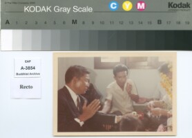 (right);Pha Maha Anurat Phutthalakkhito,former abbot of Vat Sop Luang Prabang.The photo was probably taken in the A.D.1967 Original material consists of: silver gelatine DOP print