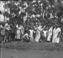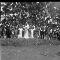 106. EAP054/1/81/216 Reference (shelfmark): EAP054/1/81/216 Title: Recreational photograph [c 1977] Scope & Content: Wedding photo bridal couple plus guests Format of original: 59mm x 59mm plastic negative Collection Area: Endangered Archives Programme Languages: Not applicable Date Range: c 1977 Extent: 1 TIFF image