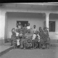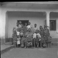 108. EAP054/1/81/219 Reference (shelfmark): EAP054/1/81/219 Title: Recreational photograph [c 1977] Scope & Content: Family group outside house, c 10 adults and children Format of original: 59mm x 59mm plastic negative Collection Area: Endangered Archives Programme Languages: Not applicable Date Range: c 1977 Extent: 1 TIFF image