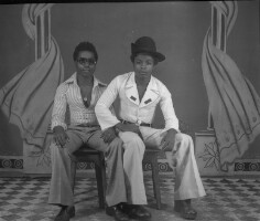 114. EAP054/1/81/250 Reference (shelfmark): EAP054/1/81/250 Title: Recreational photograph [c 1977] Scope & Content: 2 men sitting, one wearing sunglasses Format of original: 50mm x 59mm plastic negative Collection Area: Endangered Archives Programme Languages: Not applicable Date Range: c 1977 Extent: 1 TIFF image