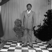 118. EAP054/1/105/235 Reference (shelfmark): EAP054/1/105/235 Title: Recreational photograph [c 1987] Scope & Content: Man from Bamendjinda standing, in dark shirt and pale trousers, dark shoes.right hand on hip. Format of original: 59mm x 59mm plastic negative Collection Area: Endangered Archives Programme Languages: Not applicable Date Range: c 1987 Extent: 1 TIFF image