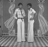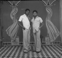 146. EAP054/1/153/127 Reference (shelfmark): EAP054/1/153/127 Title: Recreational photograph [c 1976] Scope & Content: 2 men standing Format of original: 57mm x 59mm plastic negative Collection Area: Endangered Archives Programme Languages: Not applicable Date Range: c 1976 Extent: 1 TIFF image