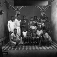 150. EAP054/1/153/147 Reference (shelfmark): EAP054/1/153/147 Title: Recreational photograph [c 1976] Scope & Content: Group of around 20 people Format of original: 59mm x 59mm plastic negative Collection Area: Endangered Archives Programme Languages: Not applicable Date Range: c 1976 Extent: 1 TIFF image