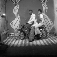 144. EAP054/1/153/95 Reference (shelfmark): EAP054/1/153/95 Title: Recreational photograph [c 1976] Scope & Content: 2 men riding motor cycle Format of original: 59mm x 59mm plastic negative Collection Area: Endangered Archives Programme Languages: Not applicable Date Range: c 1976 Extent: 1 TIFF image