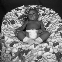 151. EAP054/1/164/133 Reference (shelfmark): EAP054/1/164/133 Title: Recreational photograph [c 1982] Scope & Content: Baby in an armchair Format of original: 59mm x 59mm plastic negative Collection Area: Endangered Archives Programme Languages: Not applicable Date Range: c 1982 Extent: 1 TIFF image