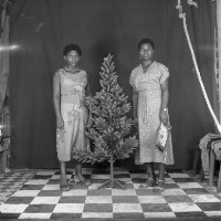 162. EAP054/1/164/162 Reference (shelfmark): EAP054/1/164/162 Title: Recreational photograph [c 1982] Scope & Content: 2 young women standing between a plastic tree, one touching it Format of original: 59mm x 59mm plastic negative Collection Area: Endangered Archives Programme Languages: Not applicable Date Range: c 1982 Extent: 1 TIFF image