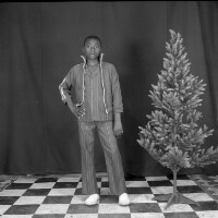 169. EAP054/1/164/201 Reference (shelfmark): EAP054/1/164/201 Title: Recreational photograph [c 1982] Scope & Content: Young man standing, hand on hip by plastic tree. Format of original: 59mm x 59mm plastic negative Collection Area: Endangered Archives Programme Languages: Not applicable Date Range: c 1982 Extent: 1 TIFF image