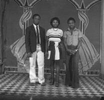 184. EAP054/1/153/226 Reference (shelfmark): EAP054/1/153/226 Title: Recreational photograph [c 1976] Scope & Content: 2 men either side of a woman, all standing. Format of original: 57mm x 59mm plastic negative Collection Area: Endangered Archives Programme Languages: Not applicable Date Range: c 1976 Extent: 1 TIFF image