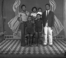 185. EAP054/1/153/227 Reference (shelfmark): EAP054/1/153/227 Title: Recreational photograph [c 1976] Scope & Content: 2 men either side of a woman, all standing. woman holding baby, 2 children in front Format of original: 52mm x 59mm plastic negative Collection Area: Endangered Archives Programme Languages: Not applicable Date Range: c 1976 Extent: 1 TIFF image