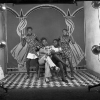 187. EAP054/1/153/250 Reference (shelfmark): EAP054/1/153/250 Title: Recreational photograph [c 1976] Scope & Content: A group of 4 young women, 2 sitting, 2 standing either side with hands raised Format of original: 59mm x 59mm plastic negative Collection Area: Endangered Archives Programme Languages: Not applicable Date Range: c 1976 Extent: 1 TIFF image