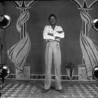18. EAP054/1/104/149 Reference (shelfmark): EAP054/1/104/149 Title: Recreational photograph [c 1983] Scope & Content: Young man from Bamendjinda standing, in white, suit, left hand on plastic tree. Format of original: 54mm x 59mm plastic negative Collection Area: Endangered Archives Programme Languages: Not applicable Date Range: c 1983 Extent: 1 TIFF image
