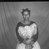 213. EAP054/1/48/214 Reference (shelfmark): EAP054/1/48/214 Title: National identity card [c 1985 - 1986] Scope & Content: Woman from Babadjou in white top, with crossed arms. Format of original: 59mm x 59mm plastic negative Collection Area: Endangered Archives Programme Languages: Not applicable Date Range: 1985-1986 Extent: 1 TIFF image