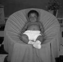 219. EAP054/1/137/332 Reference (shelfmark): EAP054/1/137/332 Title: Recreational photograph [c 1981] Scope & Content: Baby in an armchair. Format of original: 59mm x 59mm plastic negative Collection Area: Endangered Archives Programme Languages: Not applicable Date Range: c 1981 Extent: 1 TIFF image