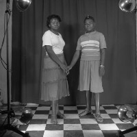 233. EAP054/1/47/545 Reference (shelfmark): EAP054/1/47/545 Title: Recreational photograph [c 1985 - 1986] Scope & Content: 2 women from Mbouda standing, holding right hands. Format of original: 59mm x 59mm plastic negative Collection Area: Endangered Archives Programme Languages: Not applicable Date Range: 1985-1986 Extent: 1 TIFF image