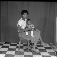 240. EAP054/1/47/603 Reference (shelfmark): EAP054/1/47/603 Title: Recreational photograph [c 1985 - 1986] Scope & Content: Woman from Babete standing, holding twins in her arms, all in white. Format of original: 59mm x 59mm plastic negative Collection Area: Endangered Archives Programme Languages: Not applicable Date Range: 1985-1986 Extent: 1 TIFF image