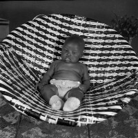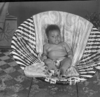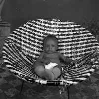 25. EAP054/1/87/20 Reference (shelfmark): EAP054/1/87/20 Title: Recreational photograph [c 1978] Scope & Content: Baby in a black and white armchair Format of original: 56mm x 59mm plastic negative Collection Area: Endangered Archives Programme Languages: Not applicable Date Range: c 1978 Extent: 1 TIFF image