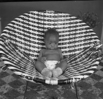 29. EAP054/1/87/26 Reference (shelfmark): EAP054/1/87/26 Title: Recreational photograph [c 1978] Scope & Content: Baby in a black and white armchair Format of original: 59mm x 59mm plastic negative Collection Area: Endangered Archives Programme Languages: Not applicable Date Range: c 1978 Extent: 1 TIFF image