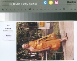 Vat Saen Sukharam Luang Prabang,Portrait of Pha Khamchan Virachitta Maha Thela (1920-2007),former president of Buddhist Fellowship Organization of Luang Prabang province and an abbot of Vat Saen Sukharam.The photo was probably taken in the A.D.1958 Original material consists of: chromogenic print