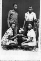 - Group of 2 young couples, men standing, women crouching, holding flowers Format of original: 62mm x 42mm Print
