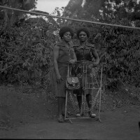53. EAP054/1/152/89 Reference (shelfmark): EAP054/1/152/89 Title: Recreational photograph [c 1976] Scope & Content: 2 women standing by iron grillwork Format of original: 59mm x 59mm plastic negative Collection Area: Endangered Archives Programme Languages: Not applicable Date Range: c 1976 Extent: 1 TIFF image